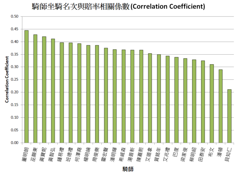 Jockey | 騎師 | 名次與獨羸賠率之間的相關係數 |