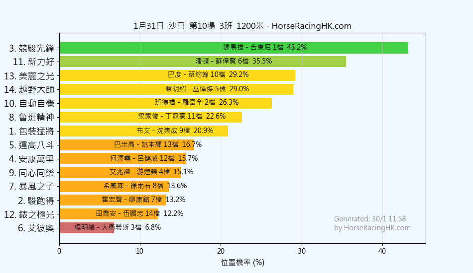 | 3 | 競駿先鋒 | 鍾易禮 | 告東尼 | 43% |