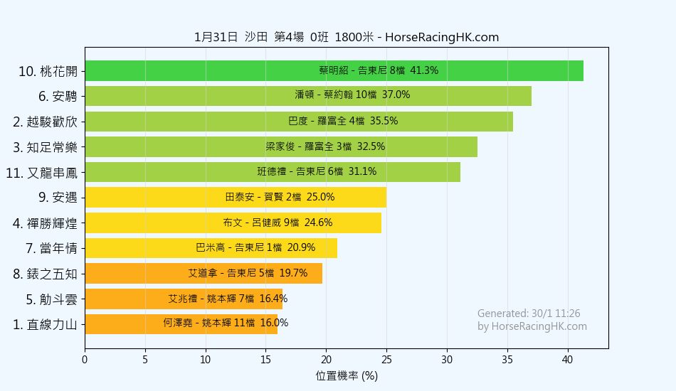 | 4 | 歡樂飛駒 | 希威森 | 呂健威 | 44% |