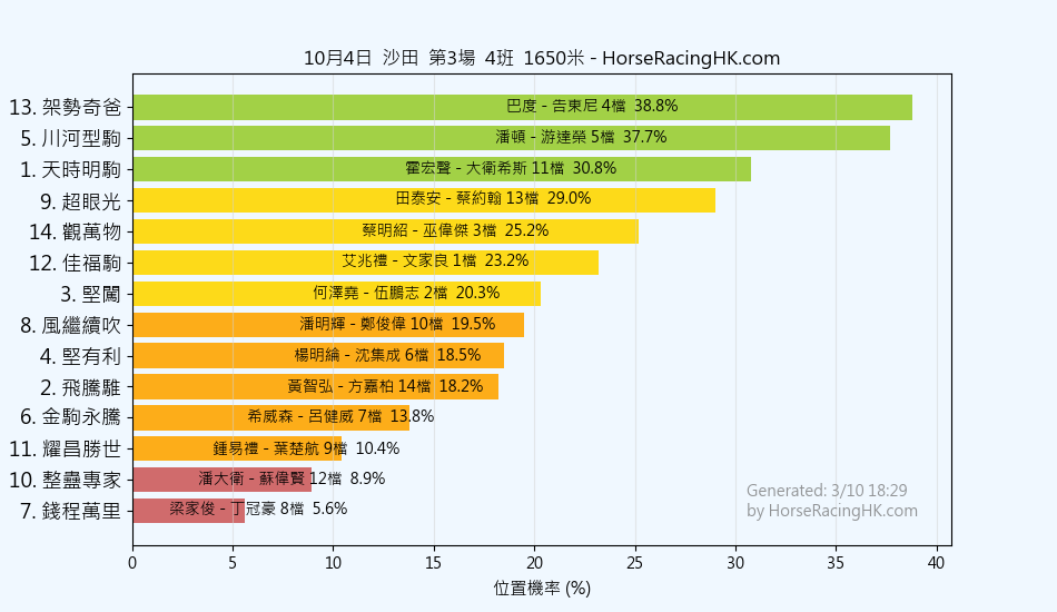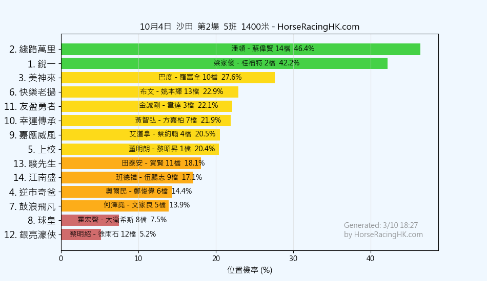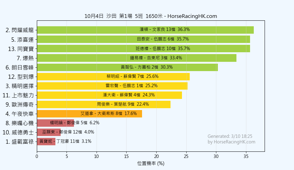 2025年10月4日沙田賽事預測