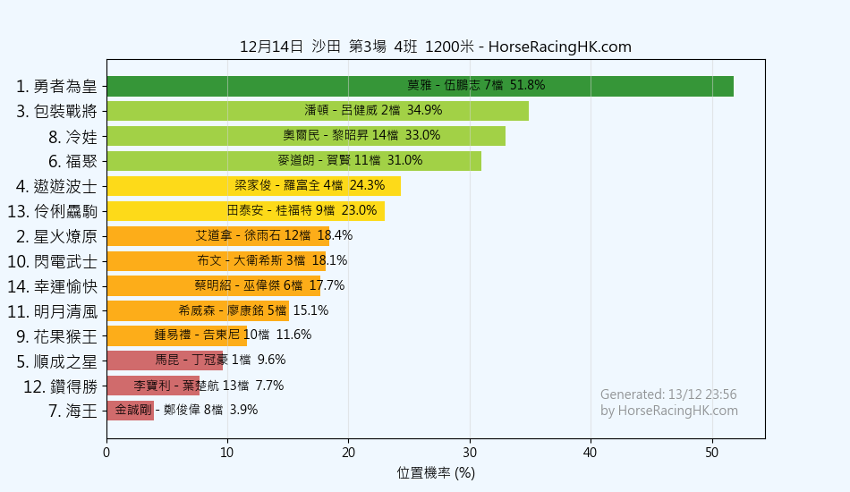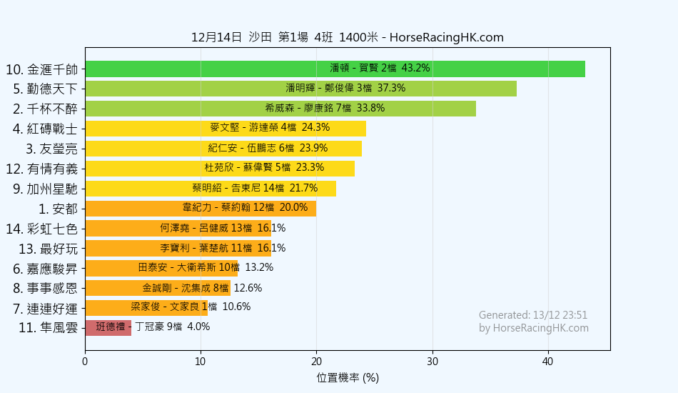 2025年12月14日沙田賽事預測