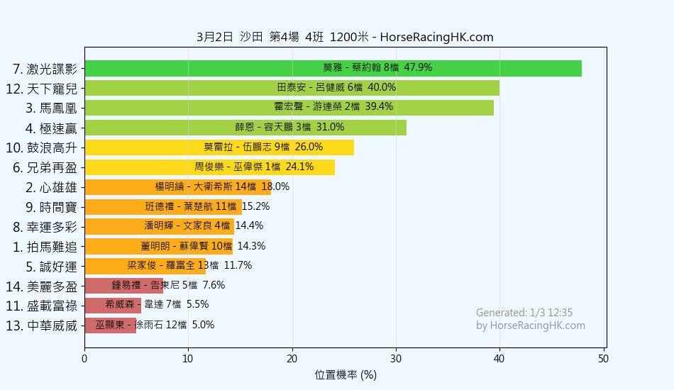 | 12 | 神速馬車 | 韋紀力 | 韋達 | 24% |