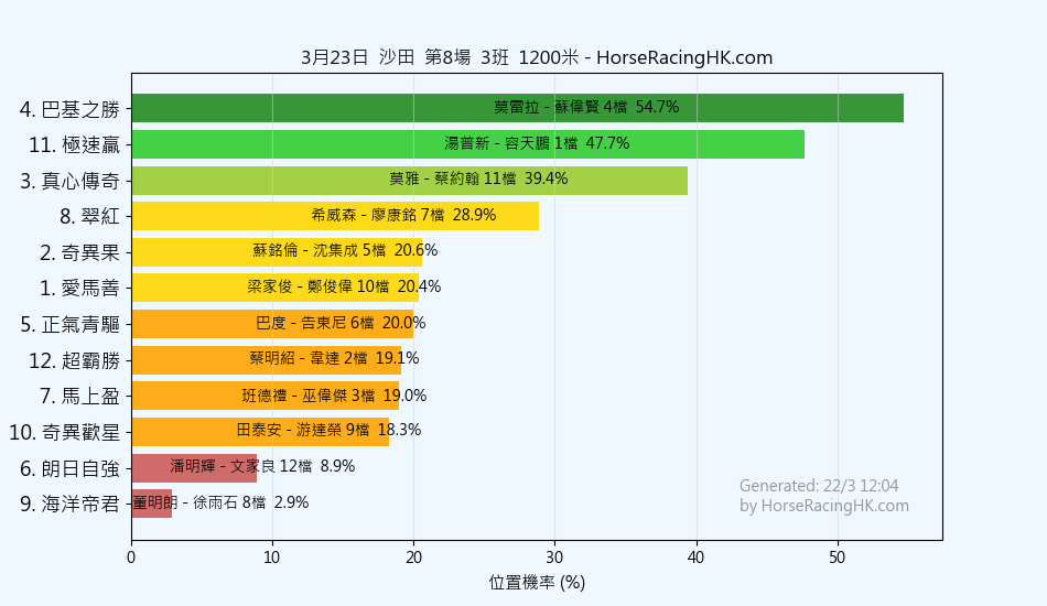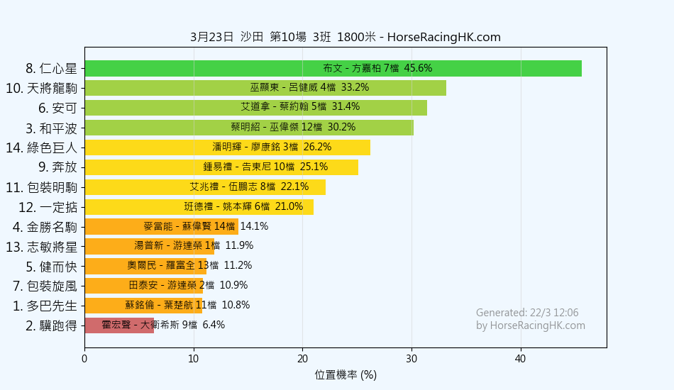 馬號 | 馬名 | 騎師 | 練馬師 | 位置機率 |