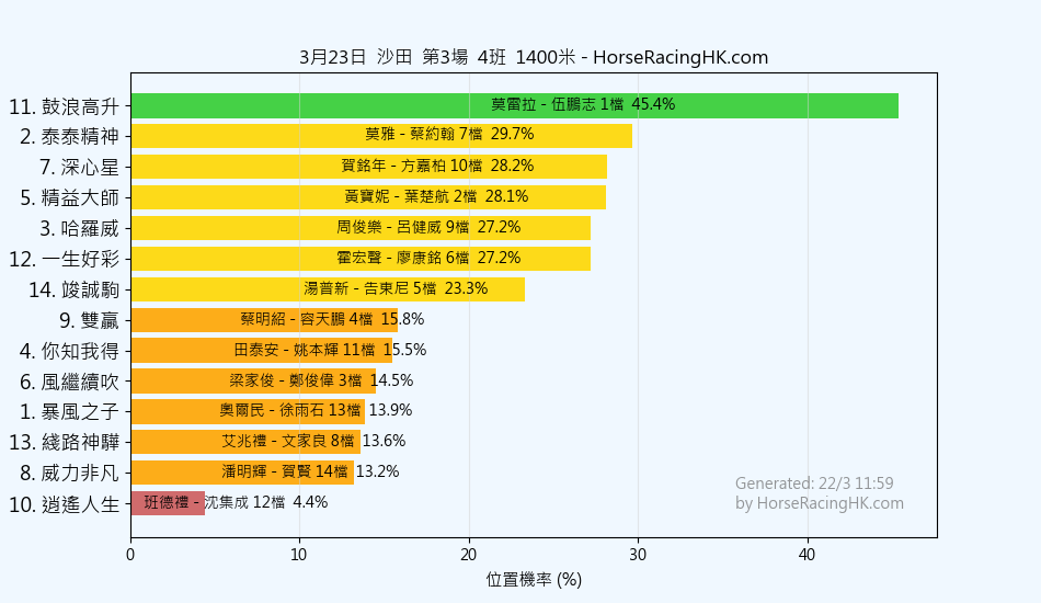 11 | 鼓浪高升 | 莫雷拉 | 伍鵬志 | 45% |