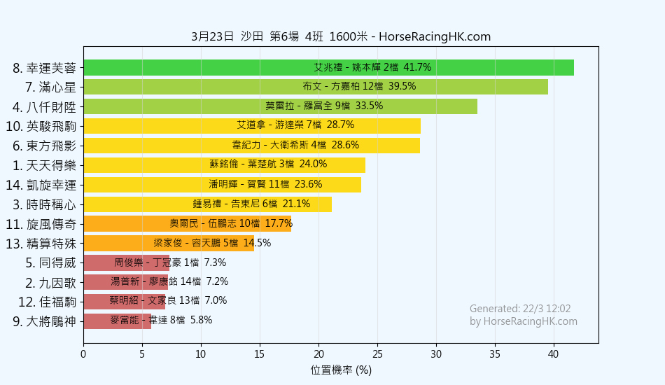 14 | 凱旋幸運 | 潘明輝 | 賀賢 | 24% |