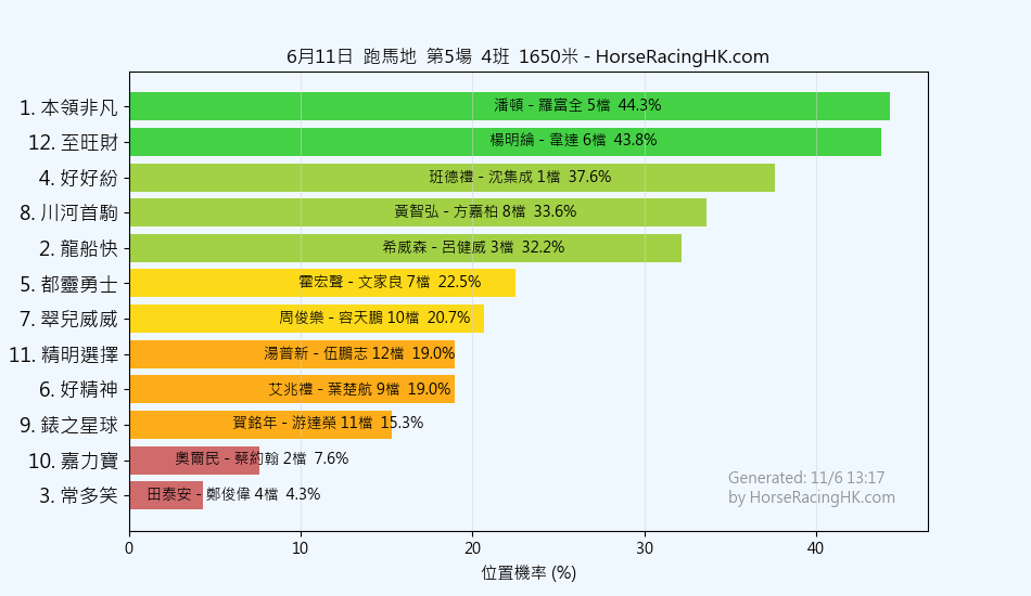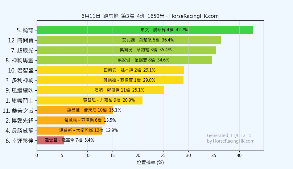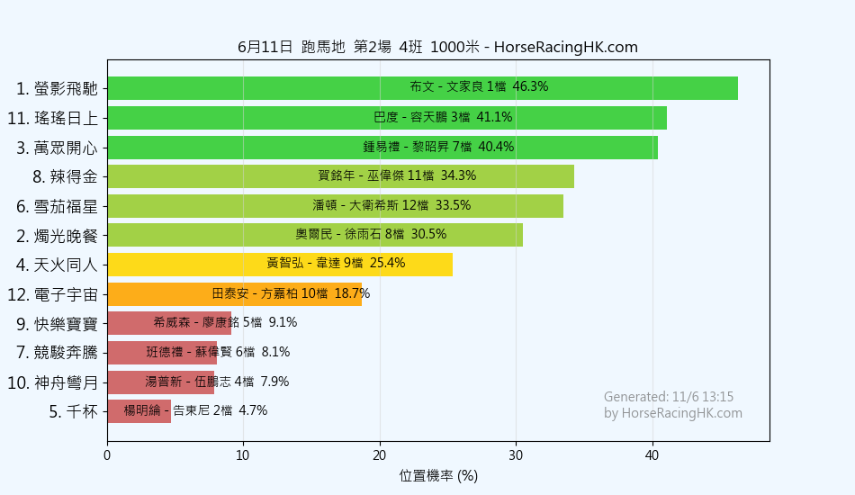 11 | 極速之子 | 巴度 | 姚本輝 | 23% |