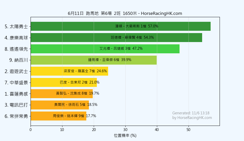 6 | 光輝所願 | 希威森 | 韋達 | 32% |