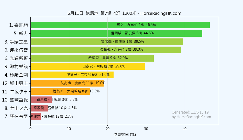 1 | 喜旺駒 | 布文 | 方嘉柏 | 47% |