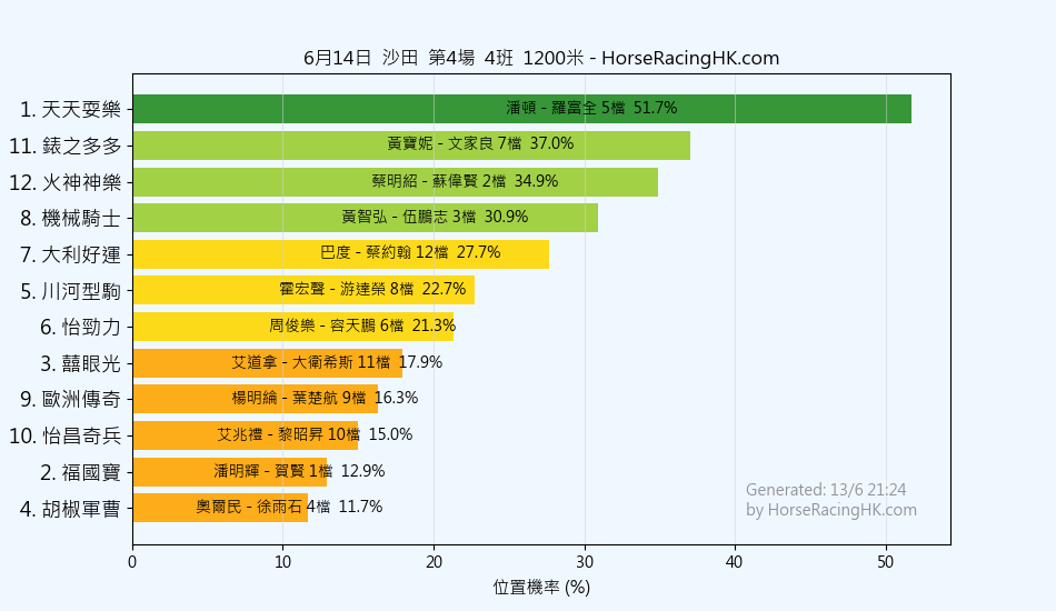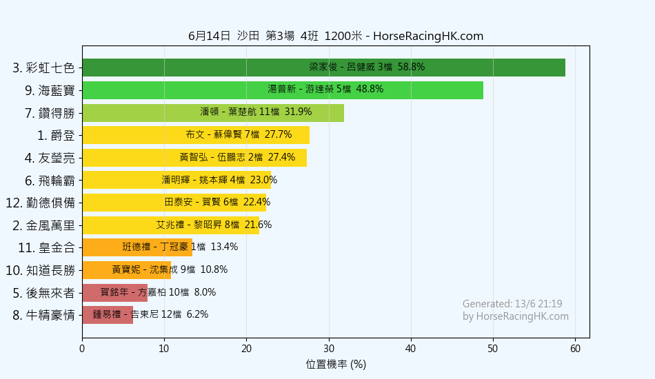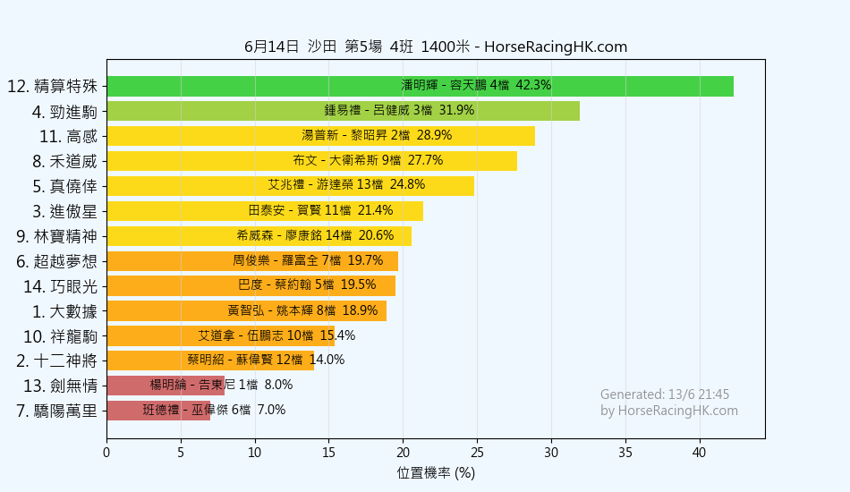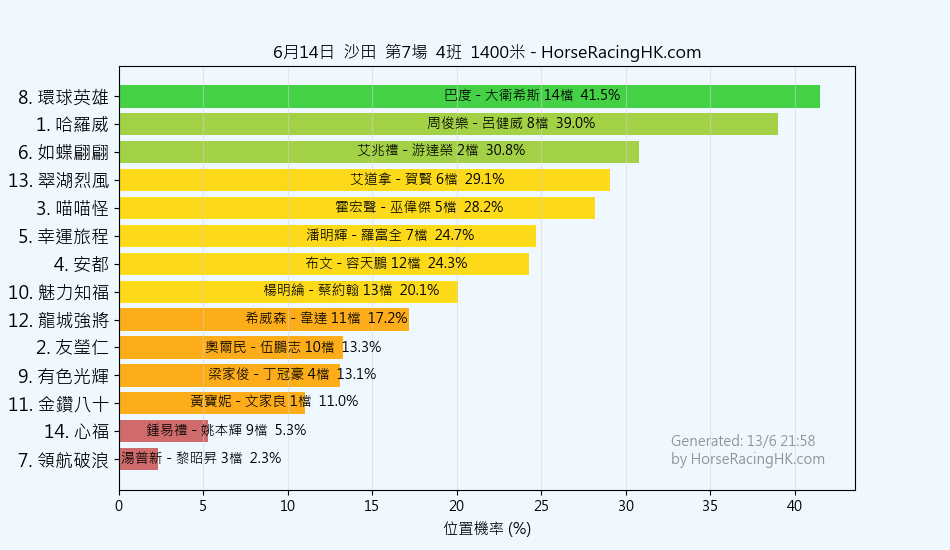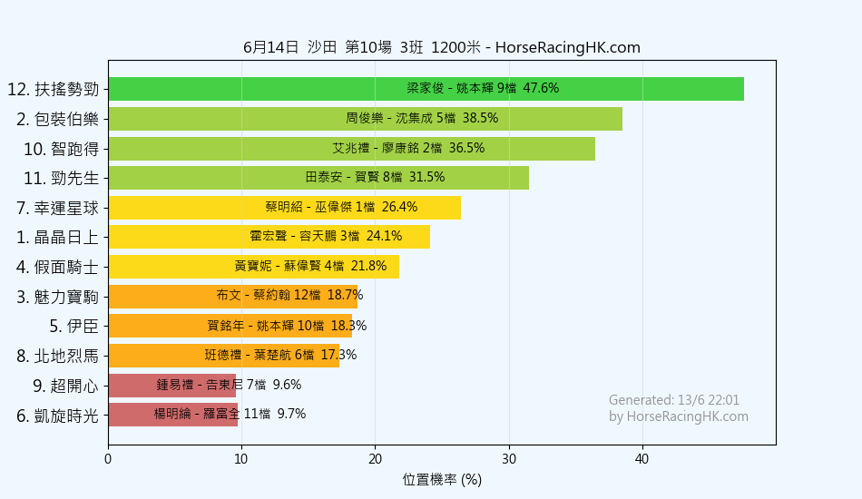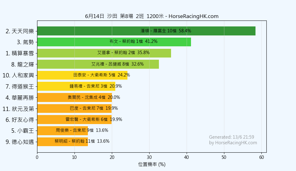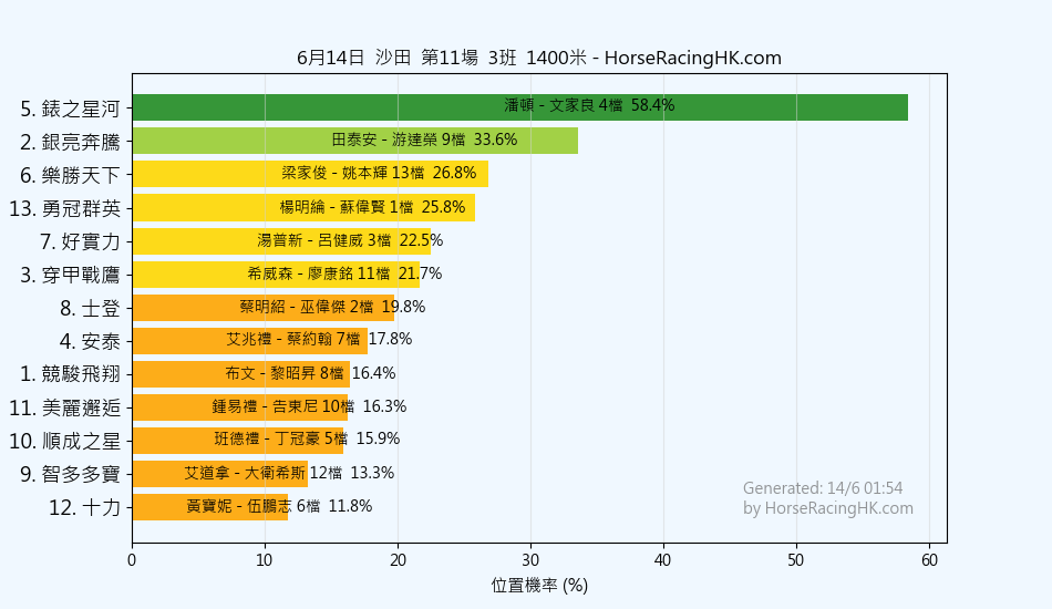 12 | 龍城強將 | 希威森 | 韋達 | 17% |
