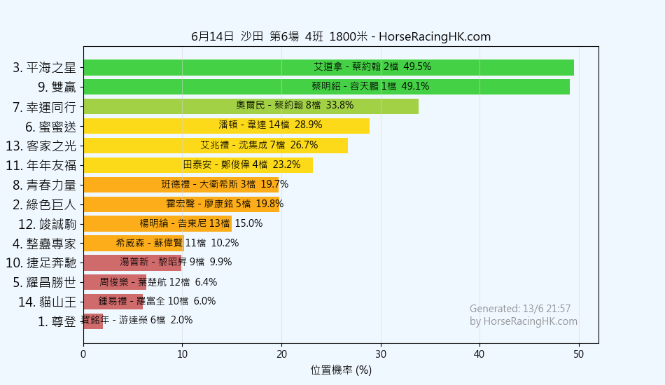 13 | 翠湖烈風 | 艾道拿 | 賀賢 | 29% |