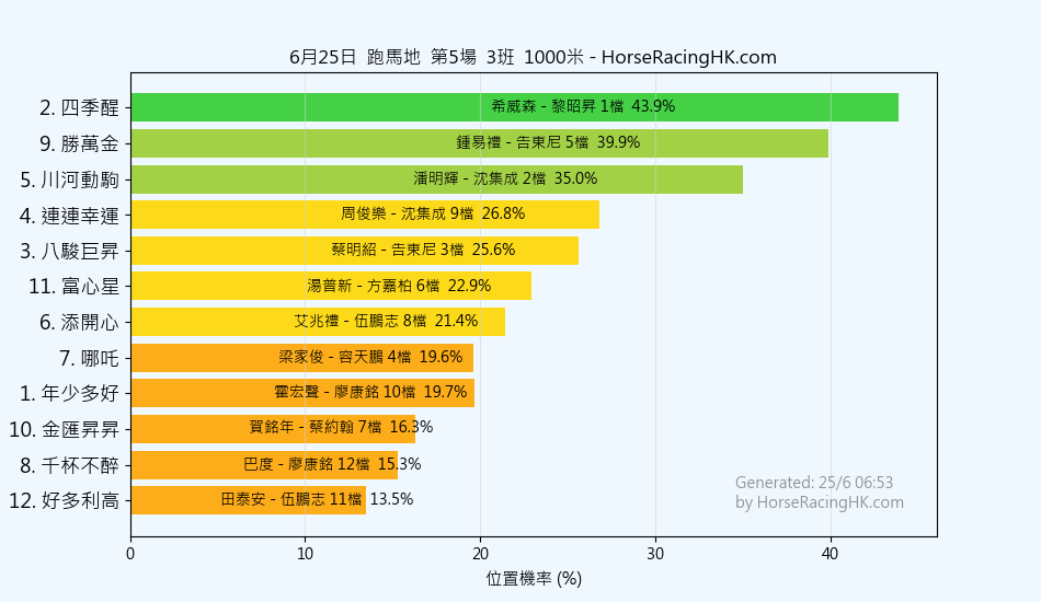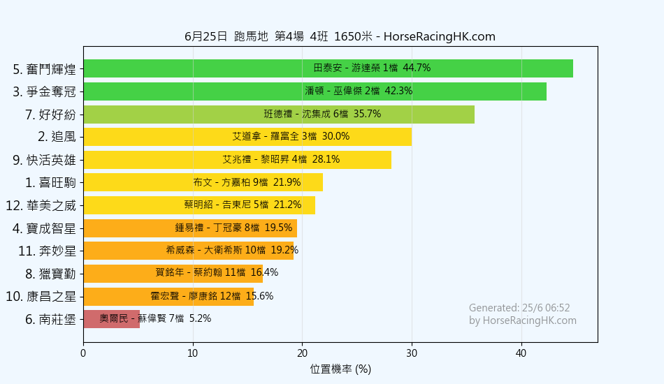 6 | 運來勇士 | 艾兆禮 | 游達榮 | 27% |