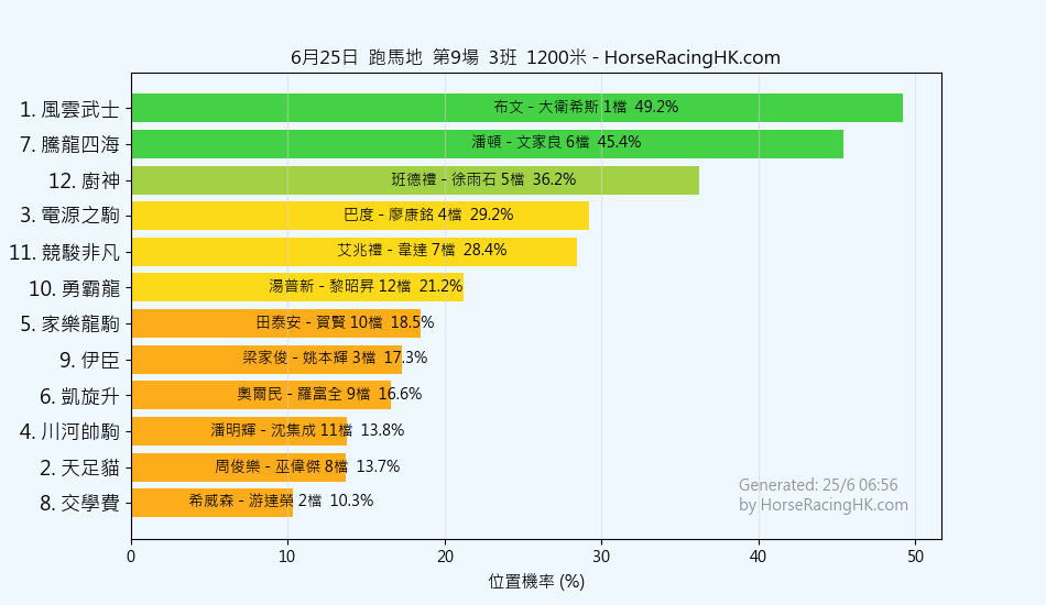 馬號 | 馬名 | 騎師 | 練馬師 | 位置機率 |