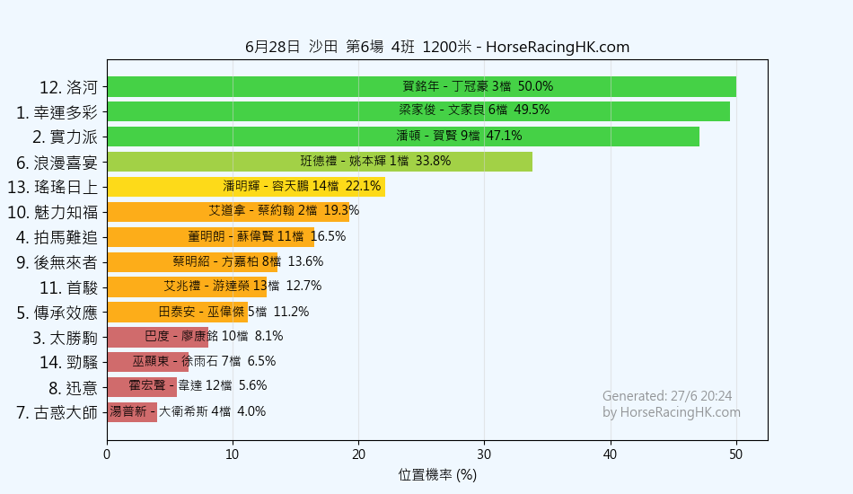 12 | 洛河 | 賀銘年 | 丁冠豪 | 50% |