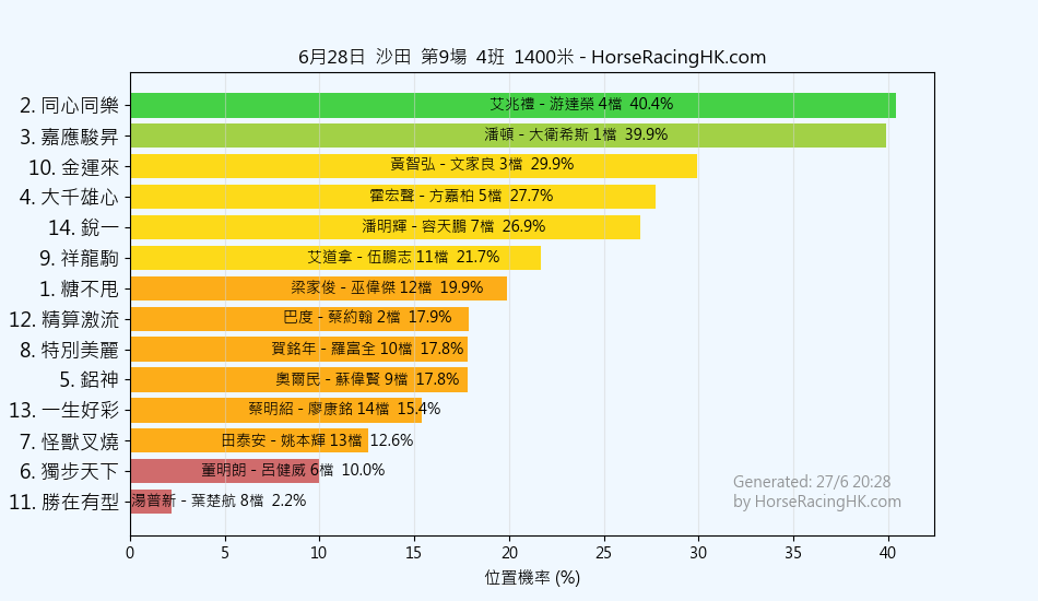 14 | 着着領先 | 巴度 | 葉楚航 | 26% |