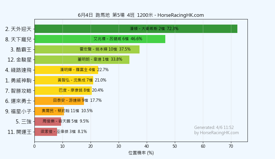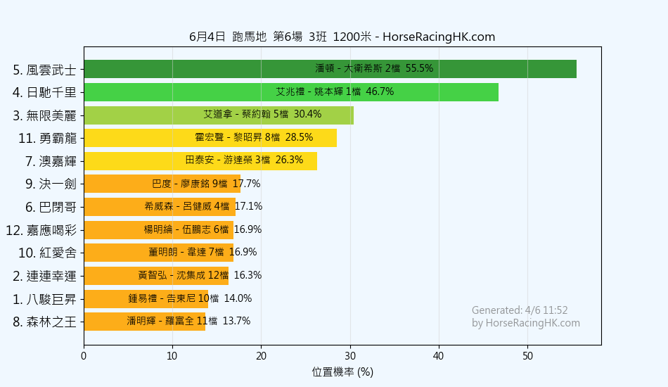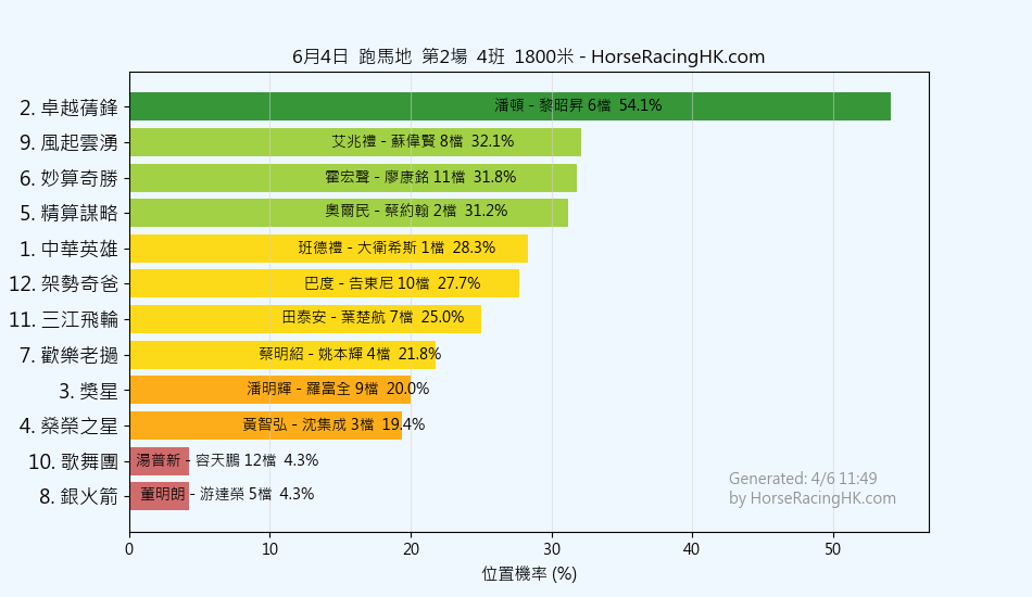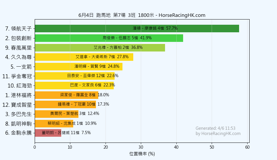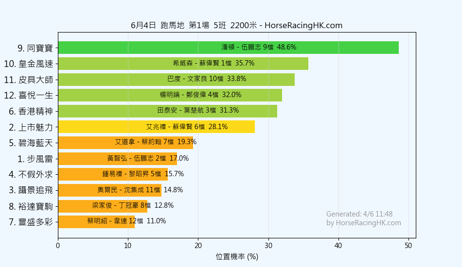 馬號馬名騎師練馬師位置機率