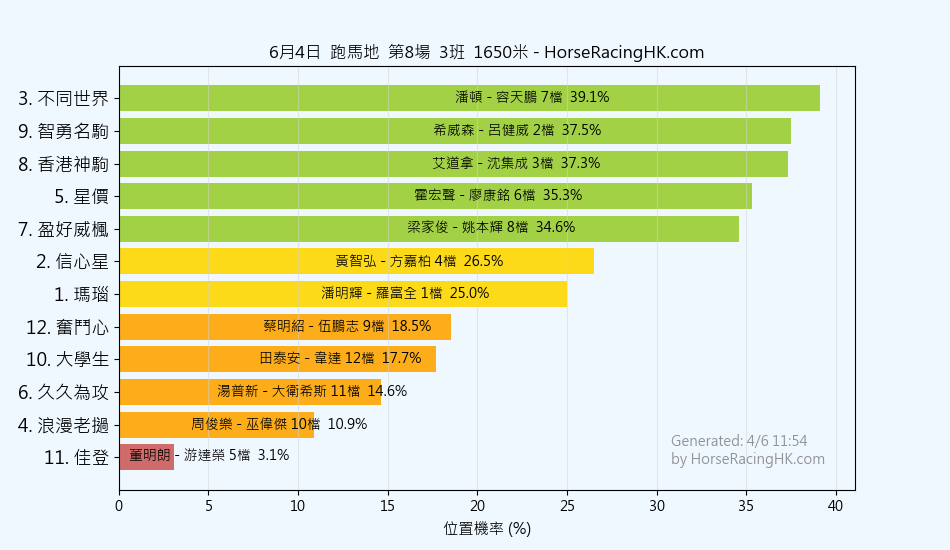 8香港神駒艾道拿沈集成37%