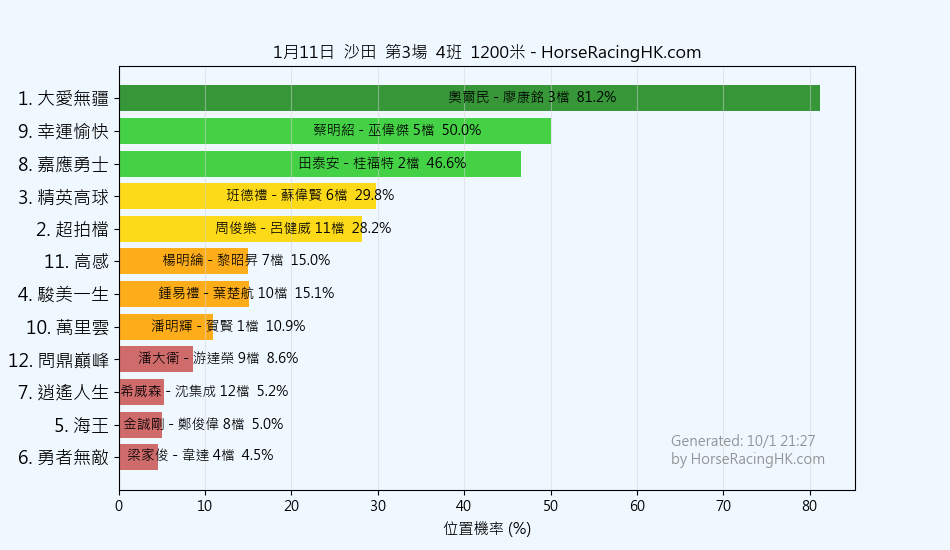 2026年1月11日沙田賽事預測