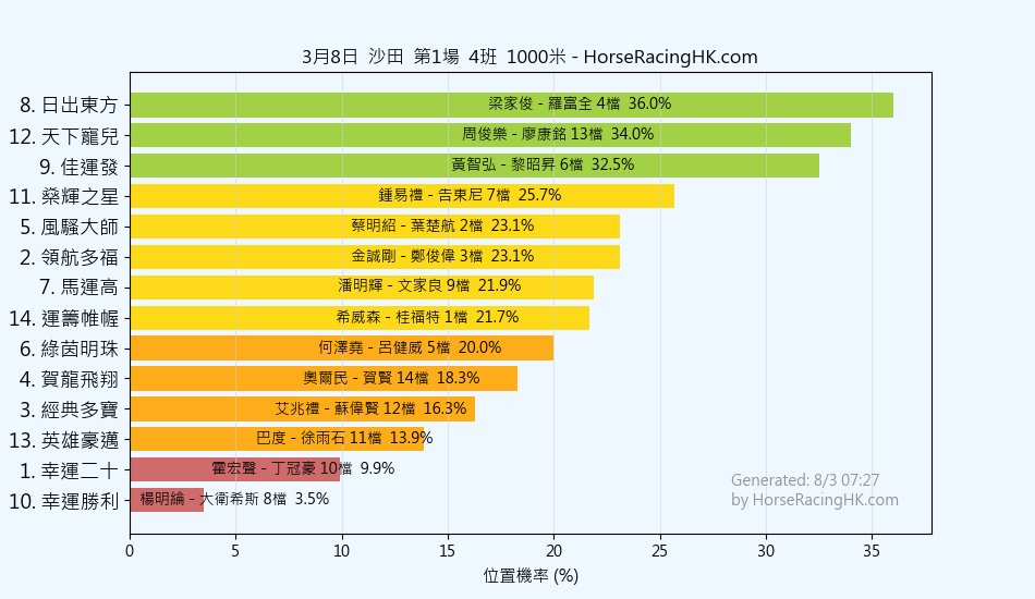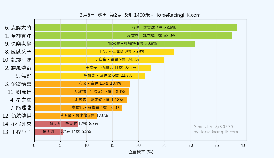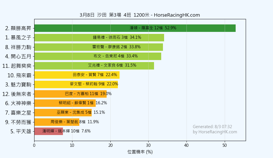 2026年3月8日沙田賽事預測
