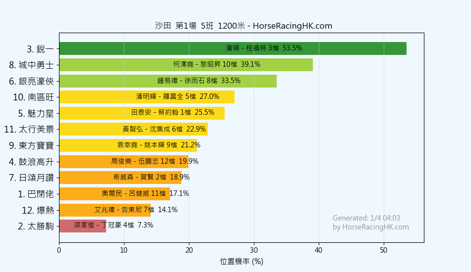 2026年4月1日沙田賽事預測